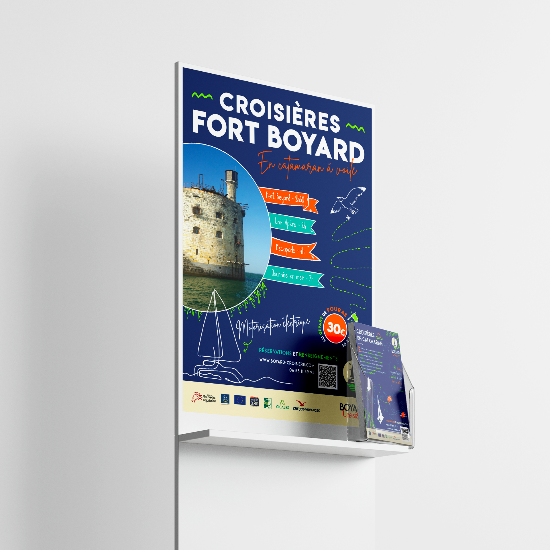 J’ai pu collaborer avec les croisiéristes de l’entreprise Boyard Croisière pour la refonte de leur site internet. De la création d’une nouvelle identité visuelle, à l’intégration de cette dernière sur leur site, nous avons conçu ensemble un nouveau site plus attractif et personnalisé. Je réalise également tous leurs supports de communication print avant chaque lancement de saison.
